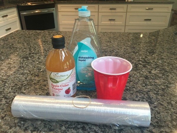 All you need to do is combine an inch or so of apple cider vinegar with a couple of drops of dish soap in a tall glass.