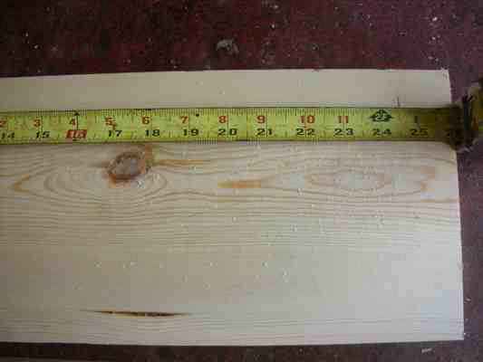 Next, take two of the 26'' long boards and mark a line at 24 1/2''.
