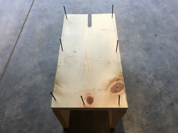 Start by pounding the finish nails around the outside edge of the side boards as shown in the picture below.