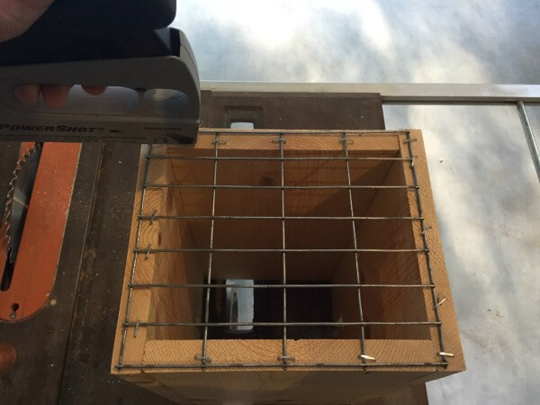 Secure the wire square to the back of the box using staples from a hand staple gun.