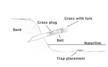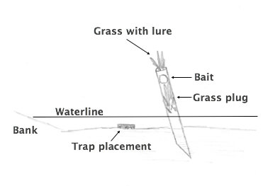 The second option uses the same pipe but instead of sticking it vertical in a shallow stream, you stick it horizontally into the river bank, similar to creating a pocket set.