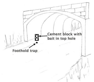 The raccoon smear set is one of my favorite sets to use when trapping an area that has either a culvert, cement foundation under a bridge, or steep ditch banks along a stream or river.