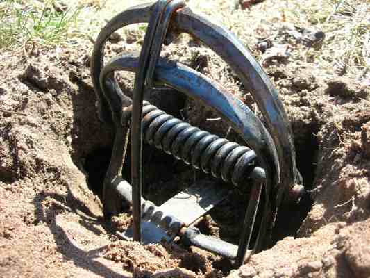 Setting the trap in an active mole tunnel is the most important step for trapping a mole.
